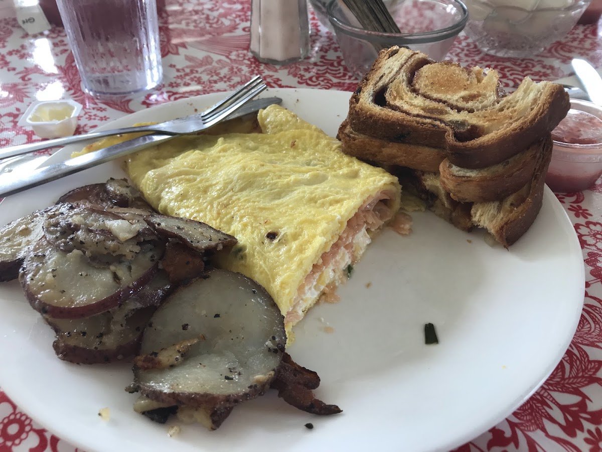 Cozy cafe just off the Main Street. Service is good and menu had some very delicious options. Smoked salmon omelet with capers and cream cheese. With a great selection of homemade jams and breads. The location is just off the main street. This a seasonal place so check if they are open before making the trip.